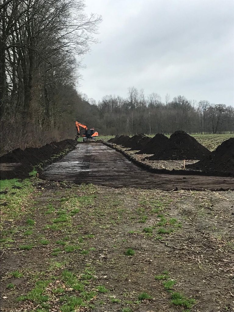 Vandaag is de firma Roossink , het loonbedrijf dat de werkzaamheden voor de aanleg van ons modelvliegveld moet realiseren , begonnen met het aanleggen van de weg naar ons veld. Eindelijk na alle regen van de afgelopen maanden kon hij nu alsnog beginnen.